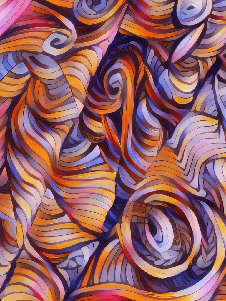 This artwork captures the mesmerizing motion of a school of fish as they swirl in unison, creating a fluid, collective dance in the underwater world. The intricate hand-drawn patterns reflect the harmonious coordination of these creatures, evoking a sense of unity and rhythm. The warm, dynamic colors transition seamlessly, symbolizing the energy and vitality of marine life, while the layered forms suggest the depth and interconnectedness of the ocean ecosystem.
